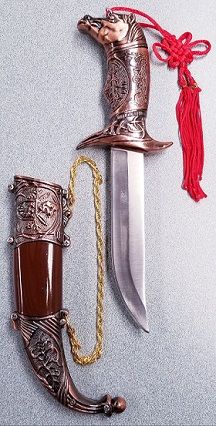 "When the Mongols invaded China in the early 13th century, they brought with them a curved, one-handed and single edged cavalry sabre that had been used by Turkic peoples (from Central Asia) since the 8th century. The curved design of the sabre influenced the shape of the Chinese dao, superseding the straight-bladed jian."