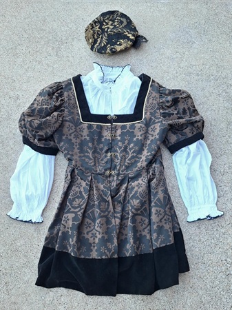 "Men’s Wappen (1500 - 1540) Once the fashions of the Landsknecht soldiers became more popular throughout Europe there is ever increasing examples of regular men starting to wear wams und hosen with a simple style of waffenrock . The top is fitted like a doublet, usually with a square neck, with skirting roll pleated on. The icon of this style is King Henry VIII of England, who employed Landsknechte and emulated the German style."