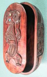 "Wakahuia were carved in many shapes. The single common feature of them was an inset lid which was fitted in a number of ways, some methods being quite ingenious.
