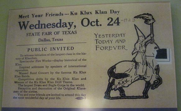The Klan publicly advertised a special KKK Day at the State Fair of Texas in 1923.