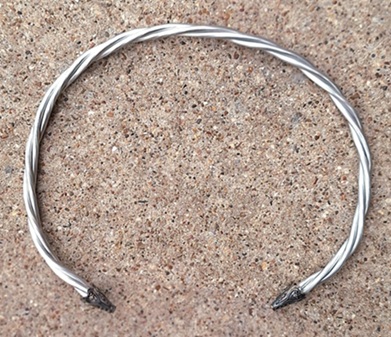 "It is believed that torcs were worn exclusively by women until the fourth century BCE, when they began to appear around the necks of male warriors. Archaeologists have unearthed examples in the British Isles as well as in the former territories or Gaul and Germania -- the most famous example, the silver 'bull torc,' was discovered in Trichtingen, Germany. In Celtic cultures, the torc was apparently an accoutrement of nobility and was also bestowed upon warriors in recognition of heroic deeds."